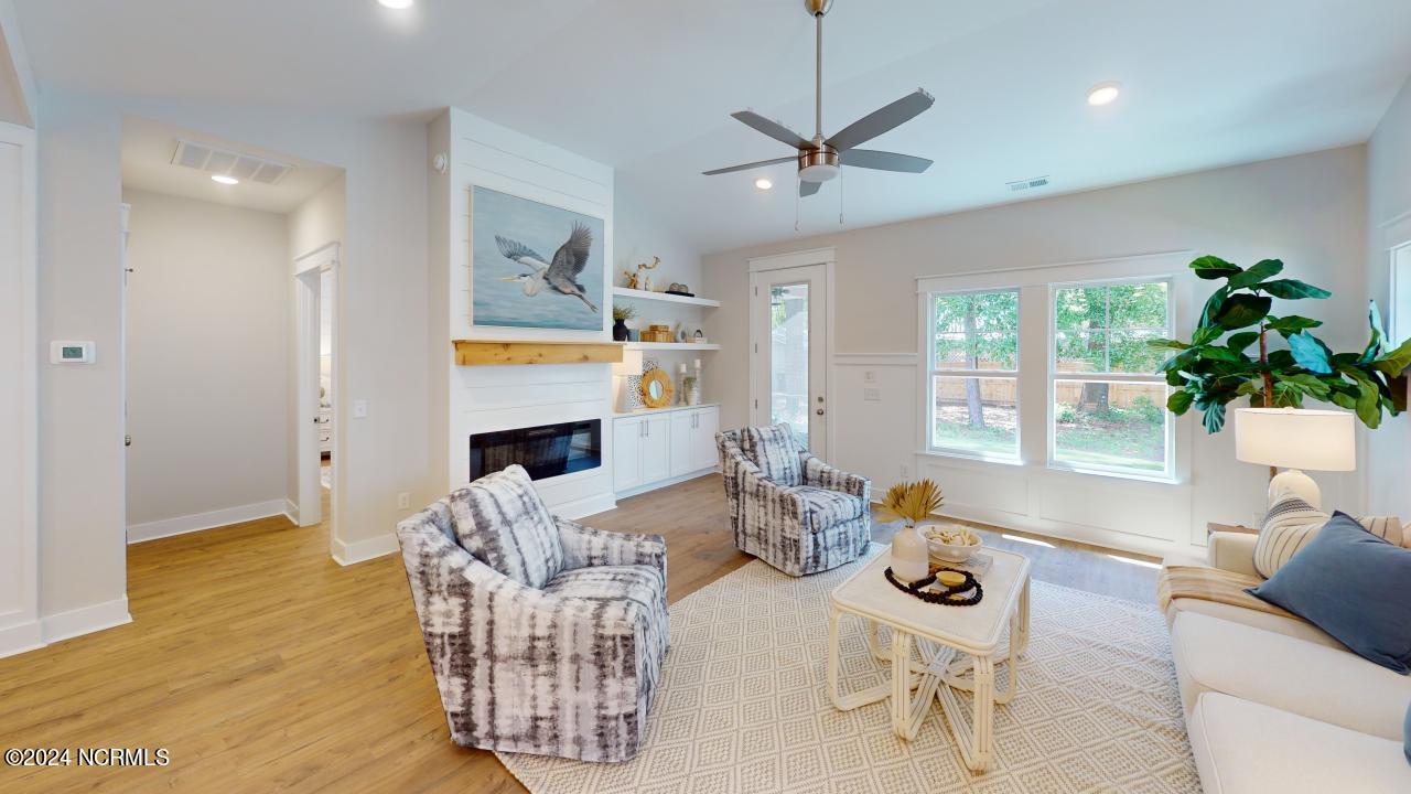 Enjoy homeownership in the new coastal comunity, GREENSIDE MANORS, within the lush, active community of Brick Landing with a spectacular pool facility, pickleball courts and tennis - and lots of resident's clubs. The OACRACOKE plan - one of our newer one-story plans, is a bright and light home enjoying 9' ceilings and a vaulted living room ceiling! A quality built design with beautiful and plentiful finishes and features all done in a elegant coastal color pallet. Some of the features include - Fiber cement and Board & Batten siding; Wainscoting entry hall; Modern trim- crown and base moldings and window and door casement throughout; Luxury laminate flooring; Electric fireplace encased in coastal Shiplap; A well equipped Kitchen with Granite counters, Stainless appliances, large Undermount sink, Tiled backsplash, Under cabinet lighting; a Master-suite with Shiplap accent walls in both the bedroom and the bathroom; a Tiled walk-in shower and a enviously large walk-in closet; Site-built custom shelving in all closets; Quartz bathroom counters in all bathrooms; Painted garage with built-in drop-zone shelf; Covered front porch, and a screened-in back patio; Pre-wired for TVs and exterior security system; Sodded with irrigation system. Located just outside the back gate, across from the ICW and about ~1/4 mile from the public Wildlife boat ramp with direct ICW access, and about 4 miles to Ocean Isle Beach's beautiful beach strand, new coastal shops, restaurants and community services. The OACRACOKE is a great coastal house in a great town with great infrastructure. Call to confirm your visit to one of our many open houses or to discuss making this new coastal home - Yours!
